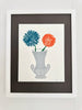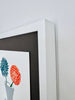 - Framed in chunky white wood frame on navy blue mat (white matboard available upon request), ready to be hung.