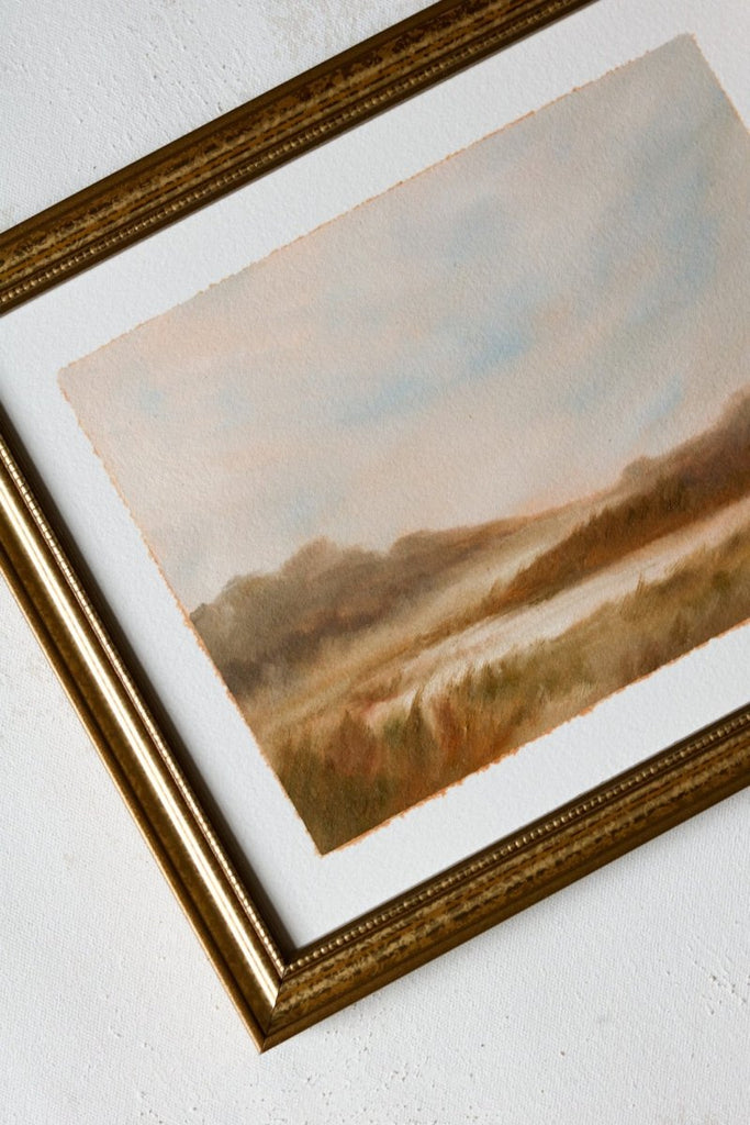 - Framed in gold without glass. Final dimensions 9" h x 11" w.