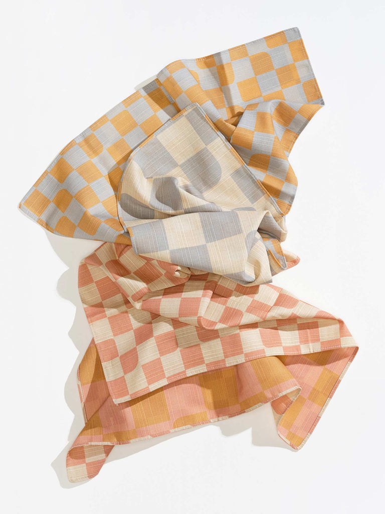 The Quiet Season Collection brings a grounded palette to the table, drawing from nature's understated moments. A counterpart to our bolder styles, this rendition of our Checker pattern appears in refined colors — slate, soil, apricot, and petal. Designed to pair effortlessly with existing table linens, the Quite Season brings sophistication to everyday settings. Each napkin is part of our double-sided collection, featuring a distinct design on the reverse side with a subtle shift in scale and color for a layered, versatile presentation. Printed on 100% cotton shantung, the fabric has a lightly textured hand and a soft, luxurious drape.