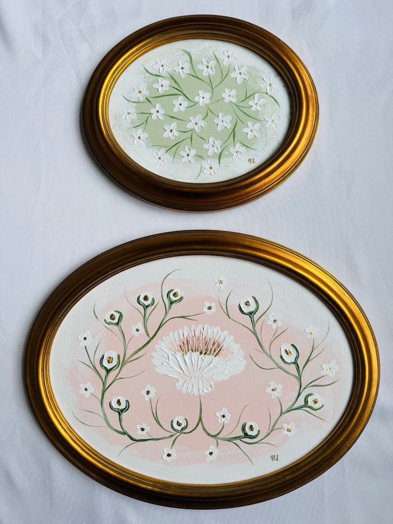 Pale Green Daisy Chain | 10.25" h x 12.25" w | Framed