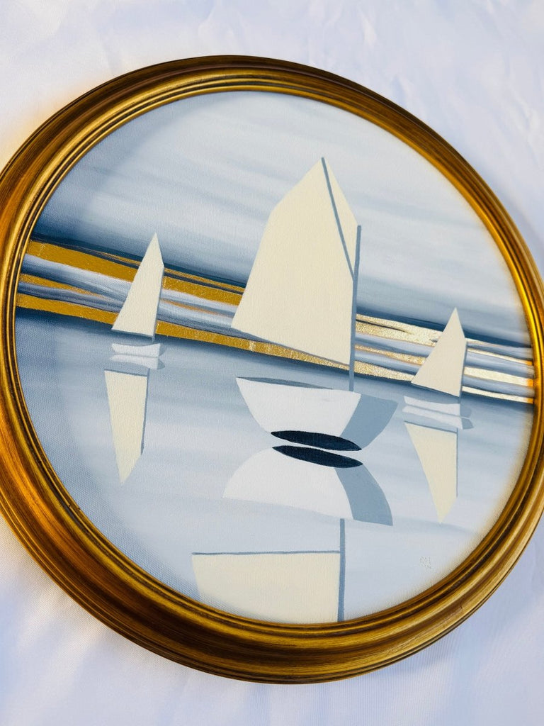 Three Cream Sails | 18.25" x 18.25" | Framed
