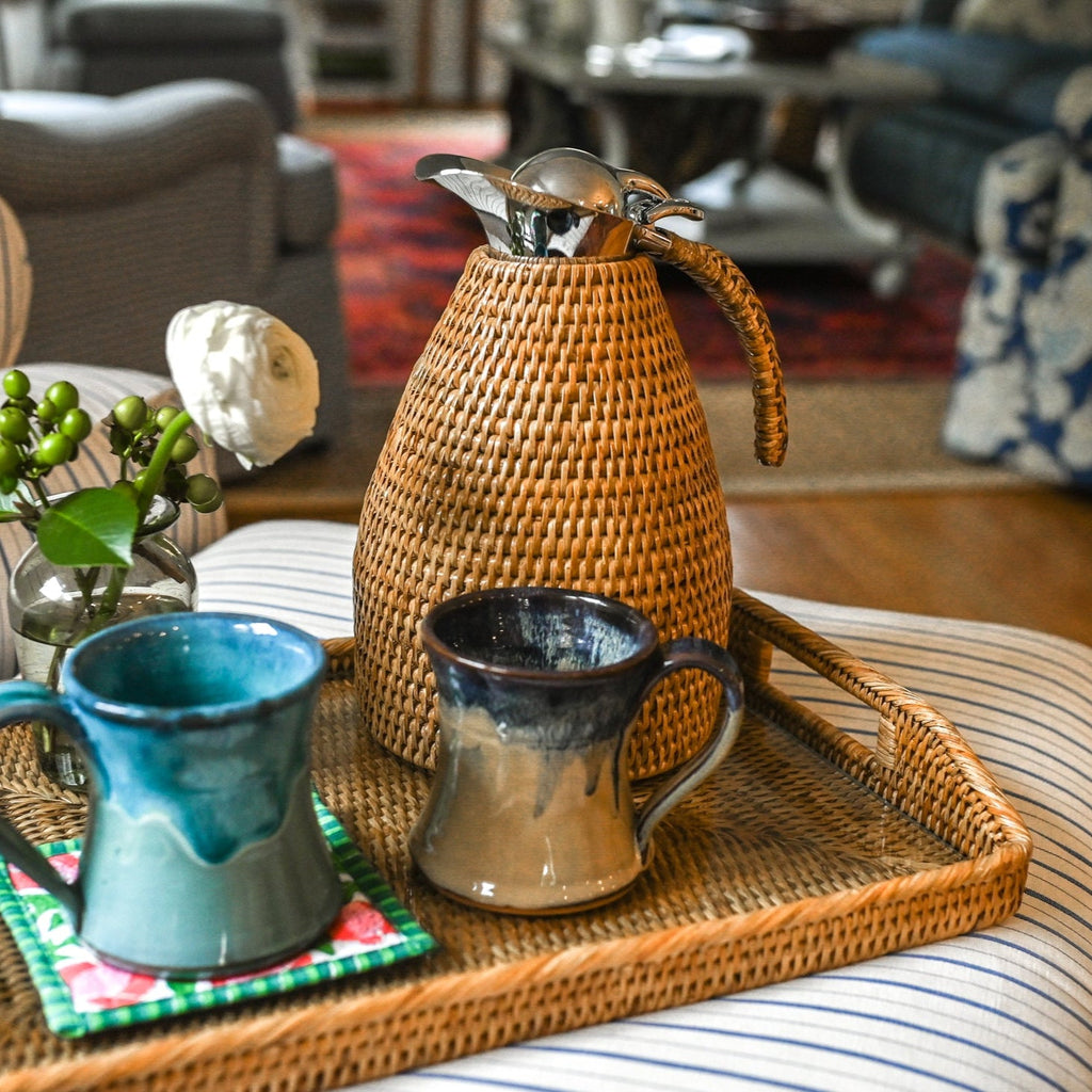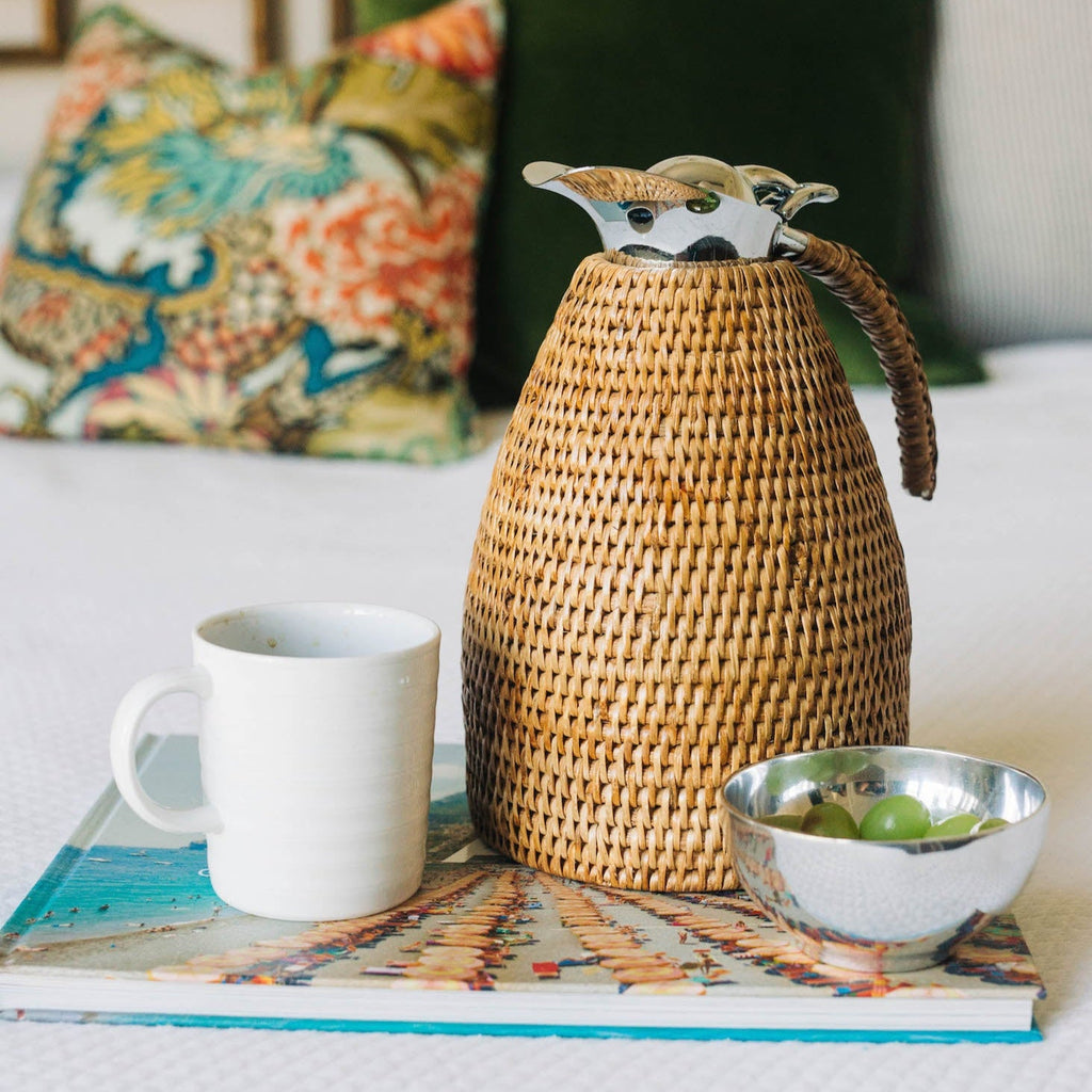 Elevate your coffee routine with this 1.5 liter rattan thermos. Made with hand-woven Burmese rattan on the exterior, the interior is lined with stainless steel to keep your coffee hot.