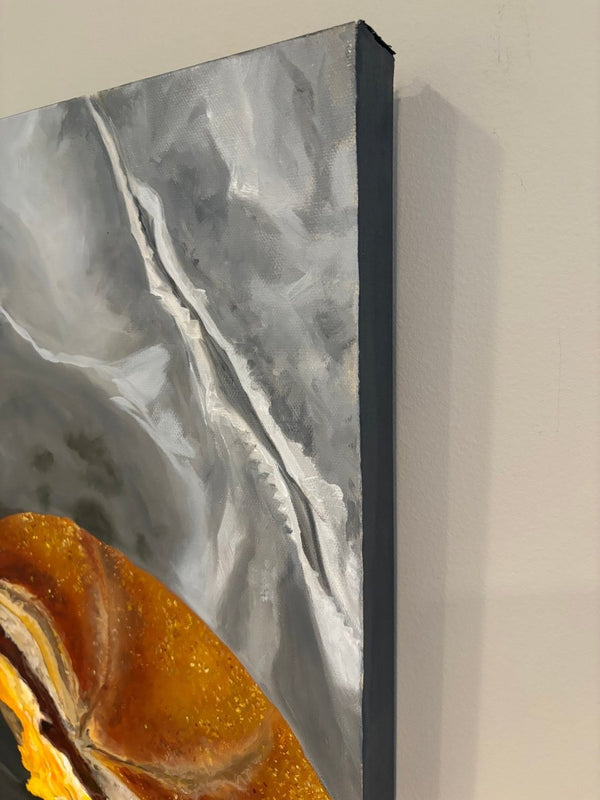 "Sitting down to enjoy delicious food and drink is one of life’s great gifts. My love for painting intricate realistic subjects combined with everyday indulgences feeds more than my soul. It’s a true feast for the eyes with a pop of whimsy for the viewer."