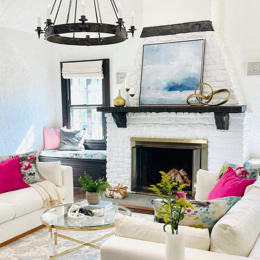 Install photos from episode 7 of this first season of Home Inspector Joe feature a 36x36 canvas print finished in gold/black floater frame. Design by @beamandbloom.