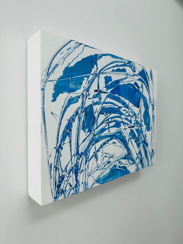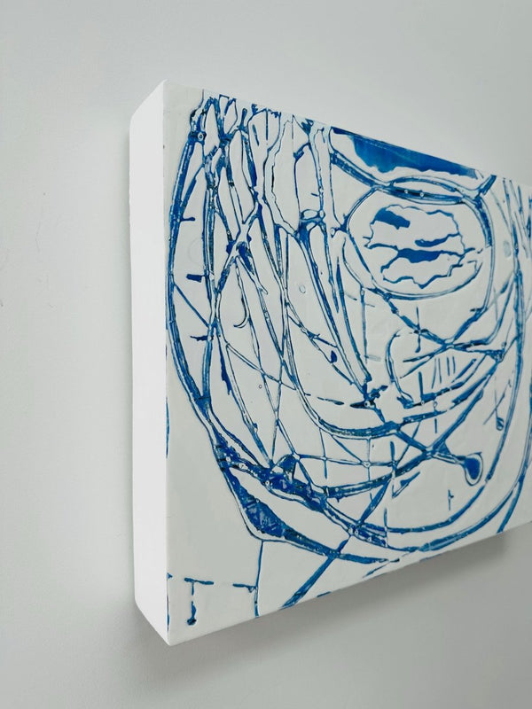 To produce works that convey this innate, intrinsic energy, Czerska employs her engineering degrees in an architectural approach. Her paintings are comprised of multiple translucent layers of paint and textures on wood panels. She builds deep structures., adding layer upon layer, each covering the one beneath. Once she is satisfied with the strata of this world, she then begins to mine what she knows lies withing by meticulously removing portions of layers. What she, in this way, unearths, is a new, elegant, intricate world, which pulsates with energy and light. As she keeps working the surface she creates new spaces—a linked, unified environment, each element coactive with the other.