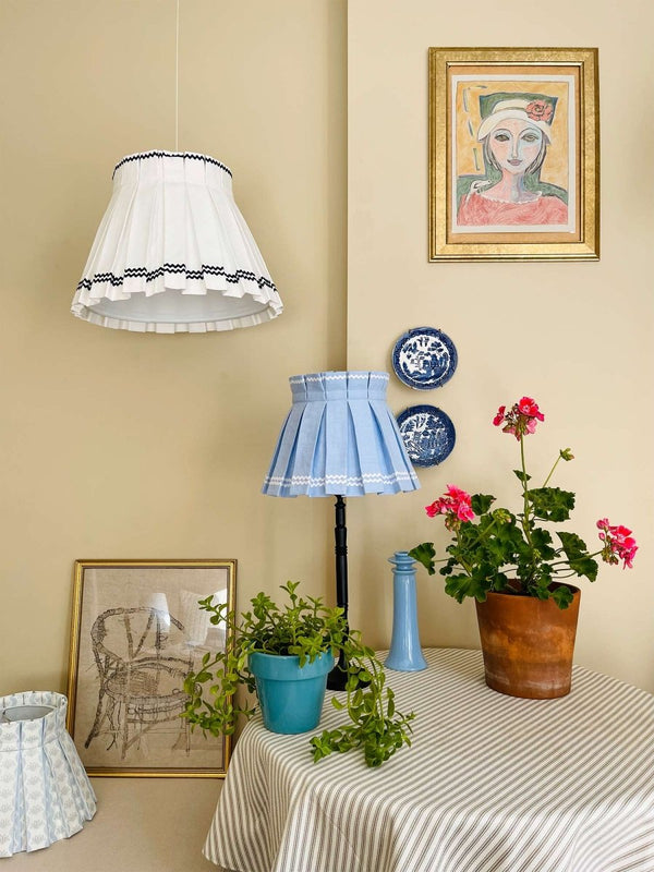 SQUIGGLE CLASSIC BOX PLEAT LAMPSHADE | WHITE/BLUE