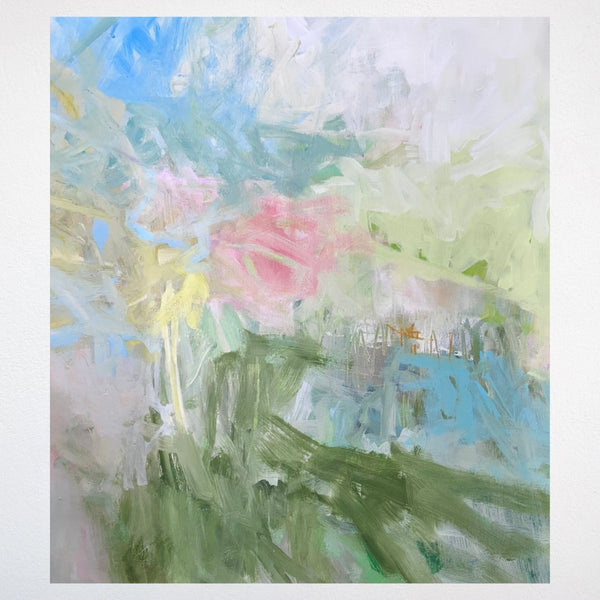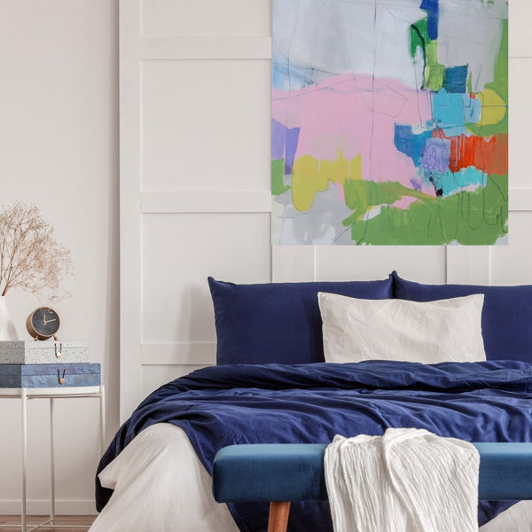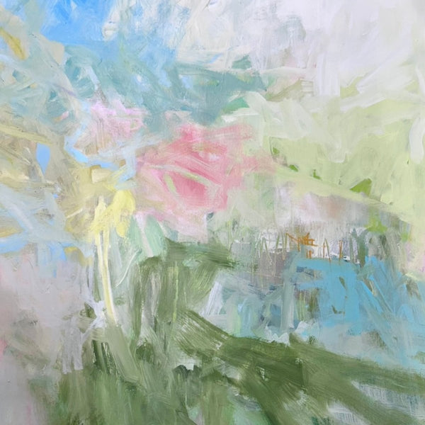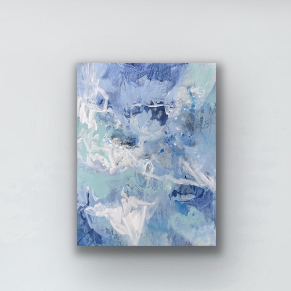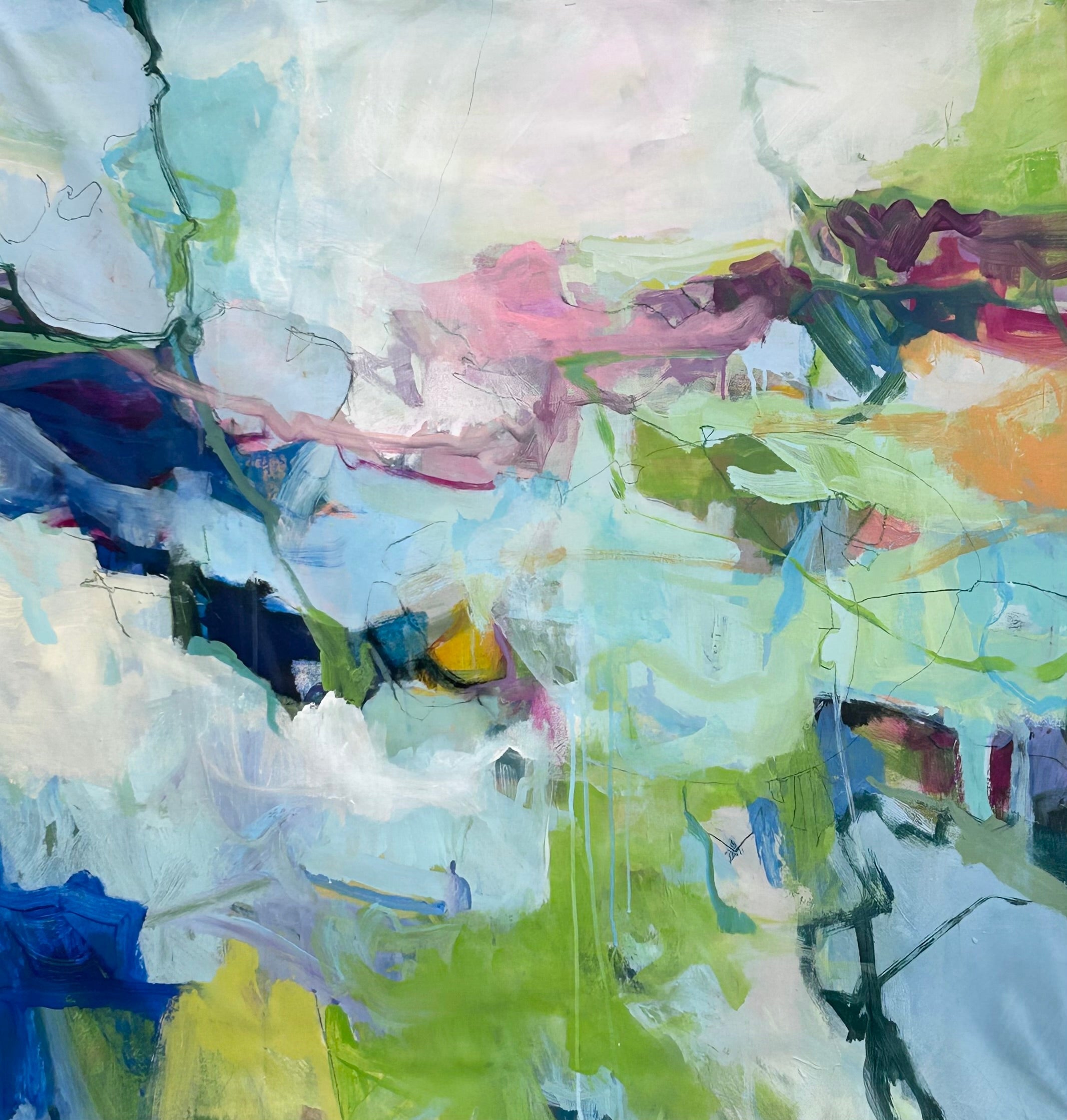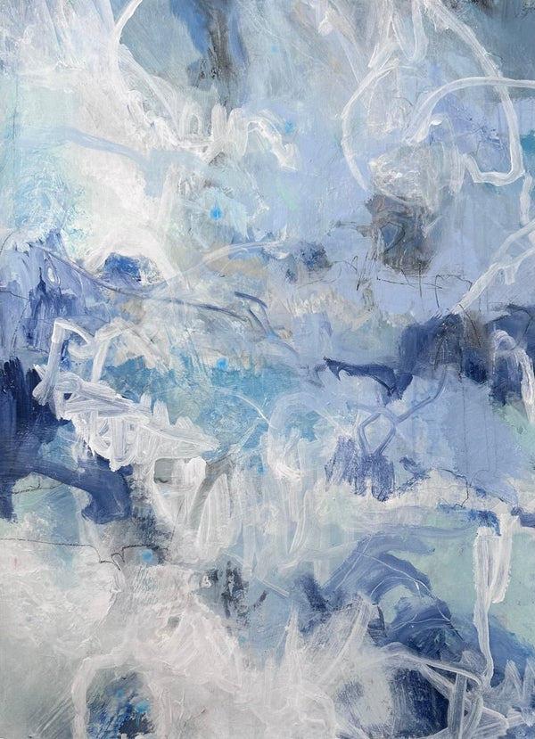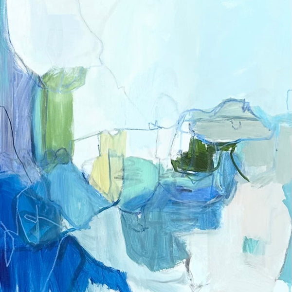 Art has the ability to transform one's psychological state and perceptions of the world. Mary Elizabeth uses specific color palettes because of their tangible emotional impact. A soothing color like blue creates a unique response to the individual and is deeply rooted in their cultural experiences. Studies have shown that a particular hue lowers blood pressure and produces calmer breathing. "My art deliberately draws you in to help improve your mental status and shifts you into a more positive mood. My paintings are a re-set button," she says. This experience one feels as they are viewing one of her pieces is by no accident. Mary Elizabeth is acutely focused in the studio, making reactionary split-second decisions, informed by her education in art history and fine art from UConn and The Corcoran College of Art + Design. Her ability to elicit these calming brain responses through her color combinations and mark-making sets her apart from other contemporary abstract artists.