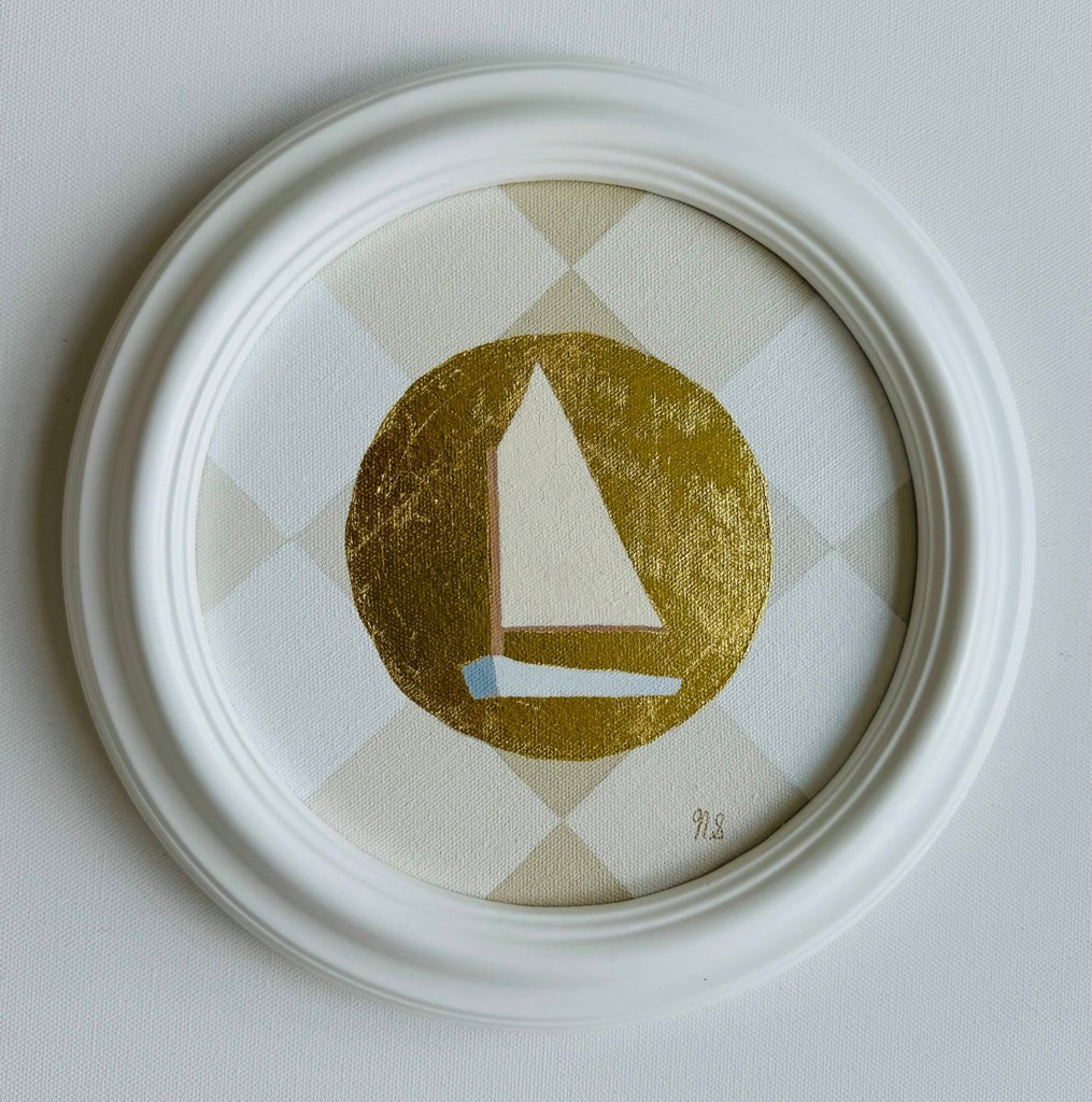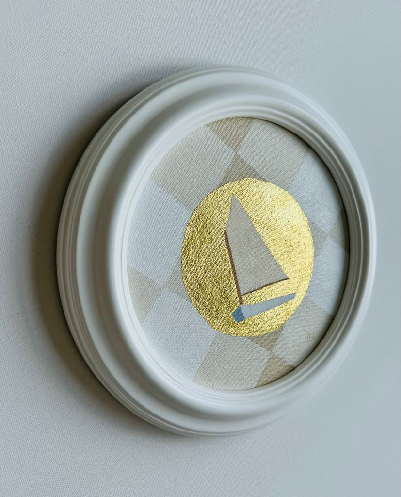 Beige Gingham & Cream Sail | 10.25" h x 10.25" w | Framed