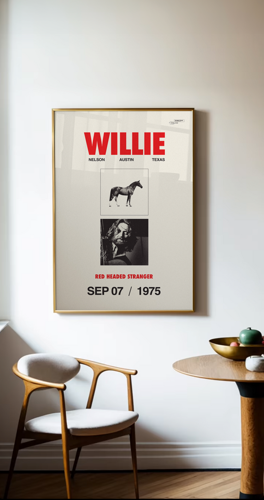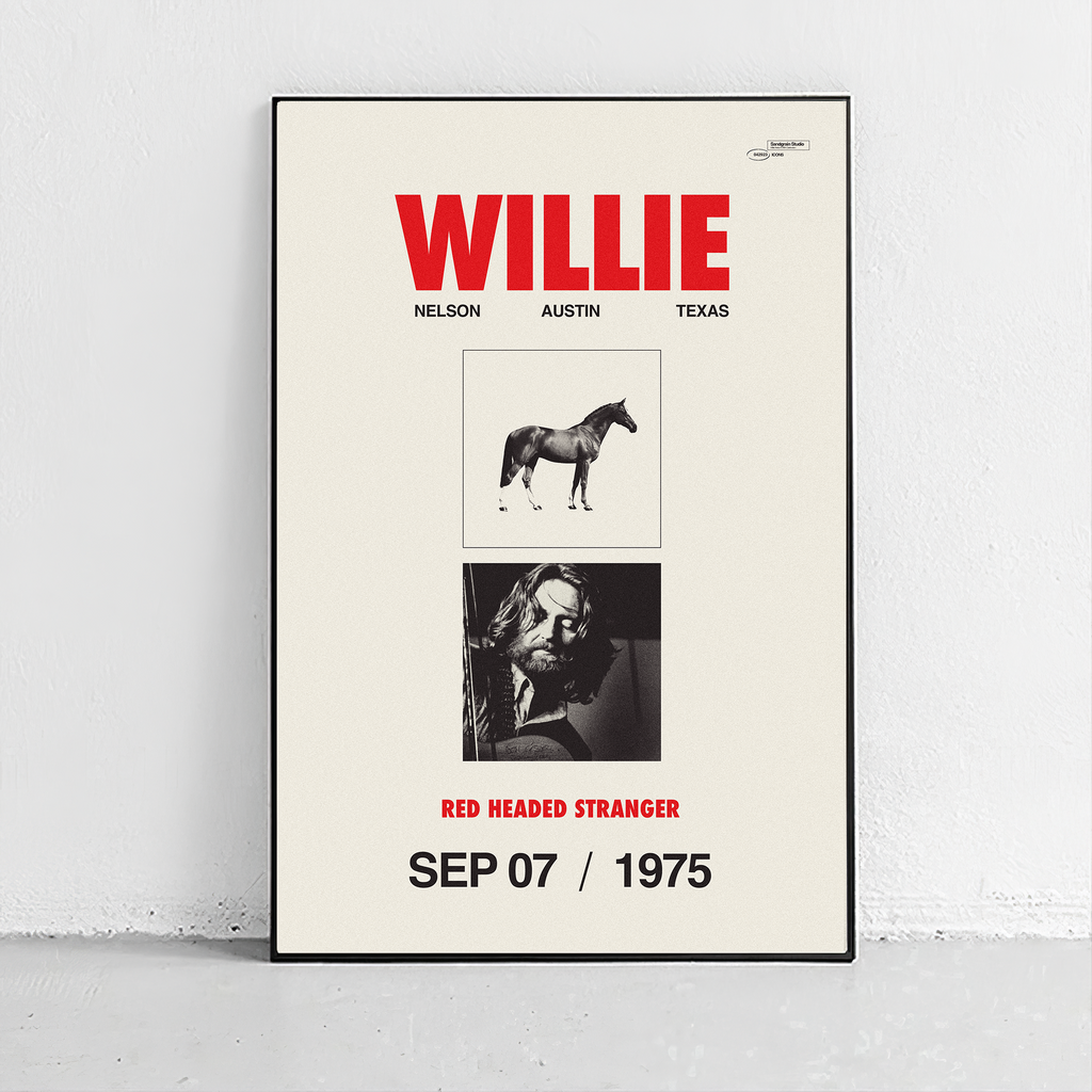 Willie Nelson - Red Headed Stranger Austin Texas  midcentury modern home design print