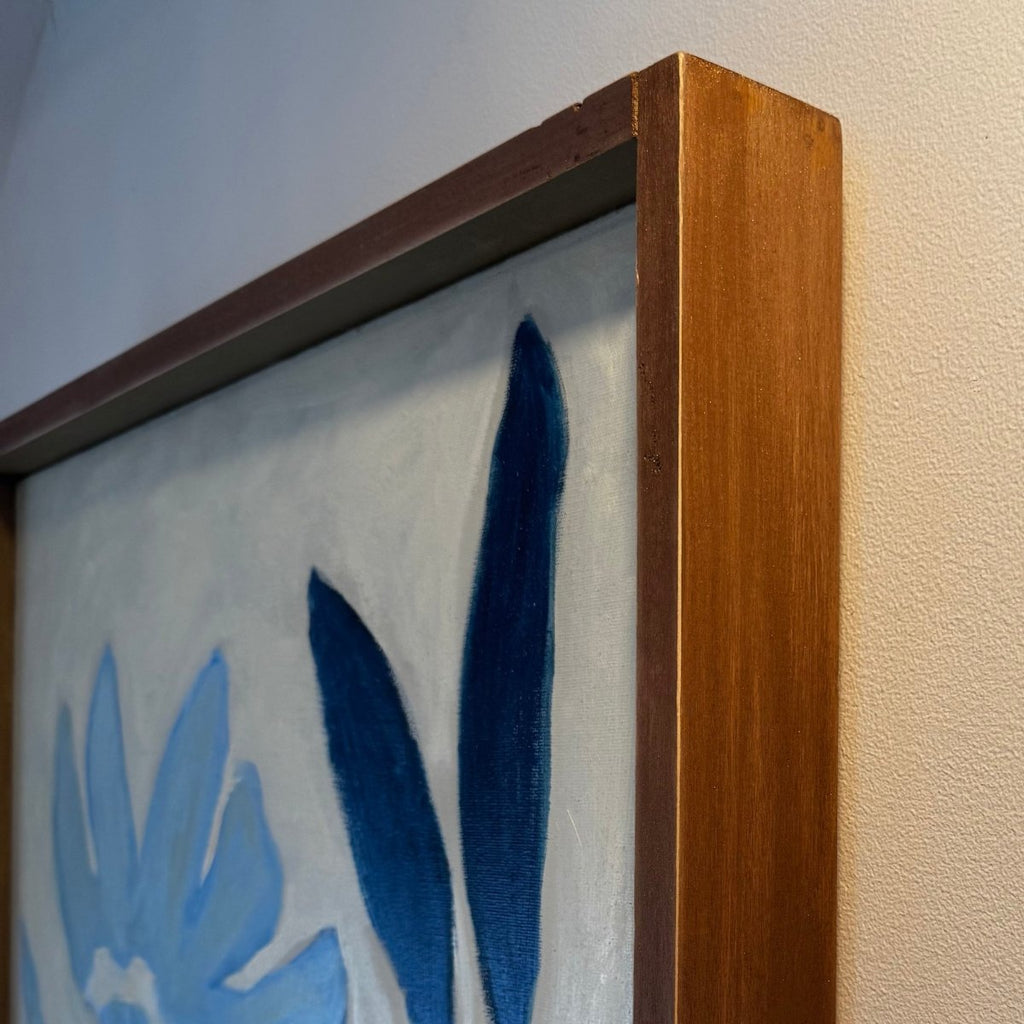 Wired, ready to hang in a rustic handmade wood frame.