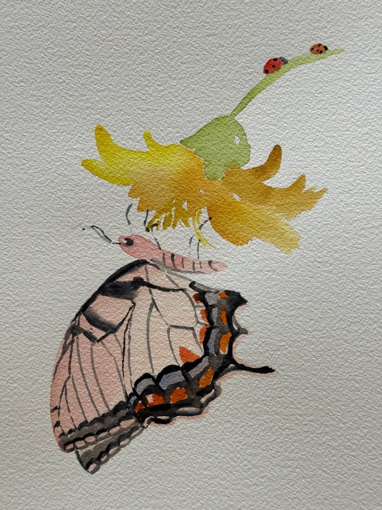 Salmon Butterfly and Ladybug | 14" h x 10" w - Liza Pruitt