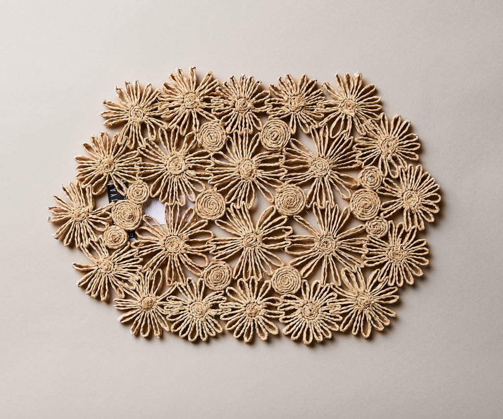 Fleur Raffia Placemat, Natural Color Flowers Woven Tabletop