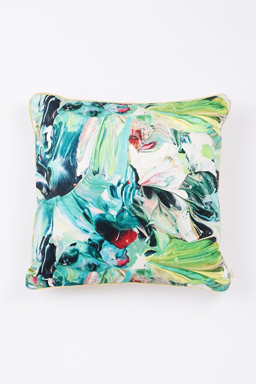 This luxurious pillow is hand crafted from sumptuous, shimmering velvet that catches the light with every movement, creating a soft, iridescent glow. Its design is elegantly intricate, featuring a pattern on one side from the original painting inspired from the original painting called Permission. The rich gold is on the back of the pillow as well as the gold cording that trims the edges provides a refined contrast, enhancing the pillow's opulence. The combination of velvety softness, the intricate design, and the delicate gold trim makes this pillow a statement piece, inviting both comfort and sophistication into any space. Made in the US. Each design will vary in their own unique creation.
