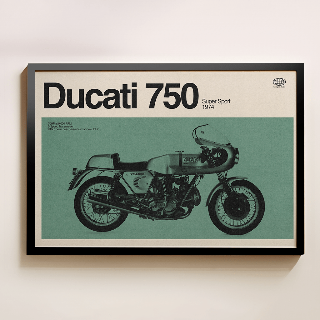 1974 Ducati 750 Super Sport Motorcycle wall art, Midcentury Modern Art Print -  Vintage aesthetic