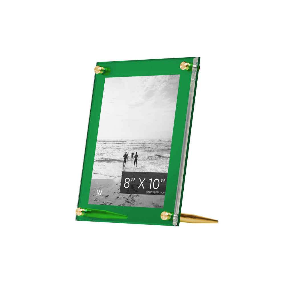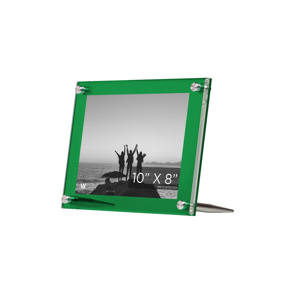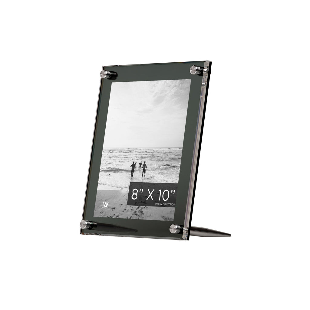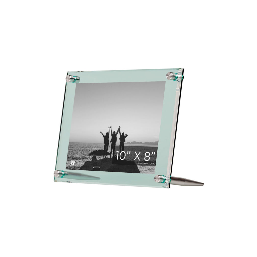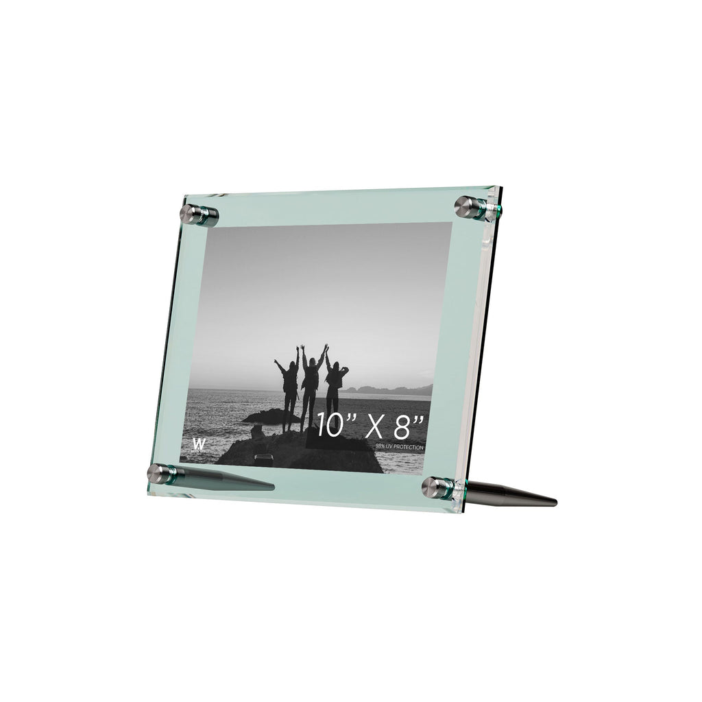 Stunning, Diamond polished bevel edge acrylic frame. Float photos up to 8x10" between 10"x12" panels. Stands vertically or horizontally.