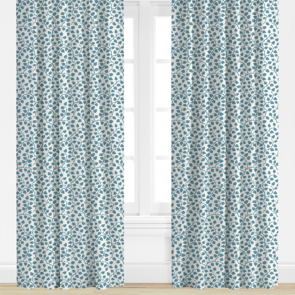 Drapes are finished with 4" header with buckram, 5 pleats and a 3.5" return and overlap. Each single width panel needs 7 rings and comes with pins set behind the pleat. (Adjusting the pin up or down can help lower or raise the panel a bit for slight adjustments as needed upon hanging). We always suggest waiting to hang drapery rods until the drapes are on hand, as it's easier to get the right placement/height when hanging the rod and drapery together.