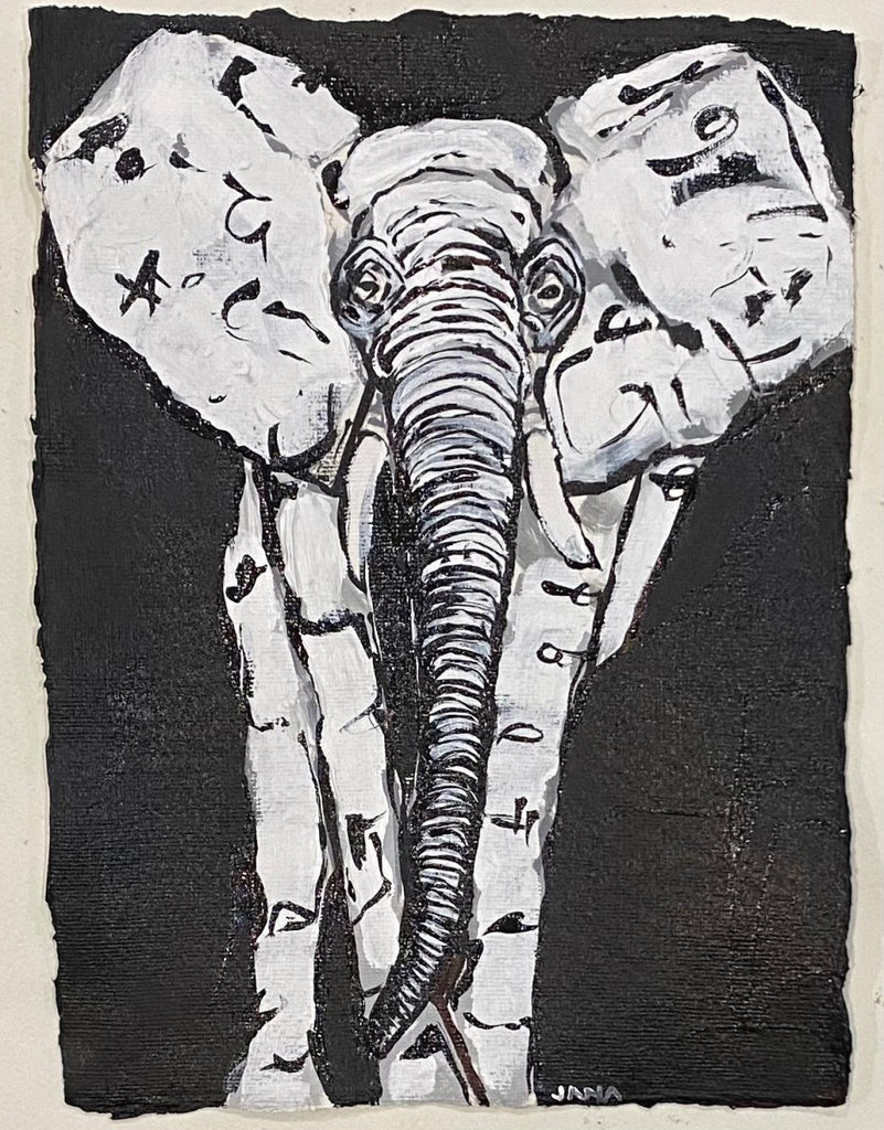 Medium: Ink, acrylic, graphite charcoal on paper with deckled edges.