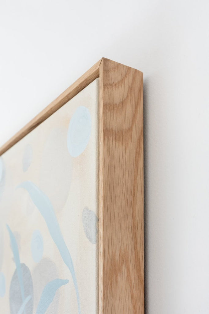 • Framed in a floating wood frame.