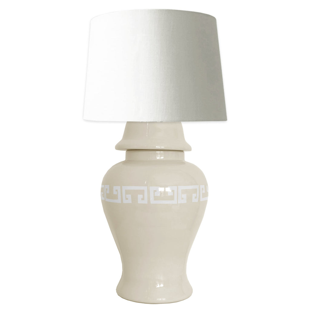 Beige Greek Key Ginger Jar Lamp