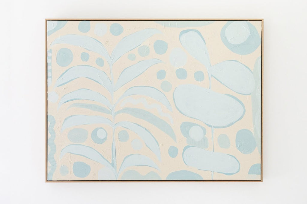 Medium: Ink and acrylic on canvas floating in a light wood frame
