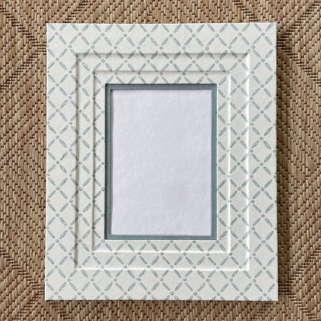 Our picture frames are made of recycled cotton paper that is hand block printed, then wrapped by Master Artisans in India.