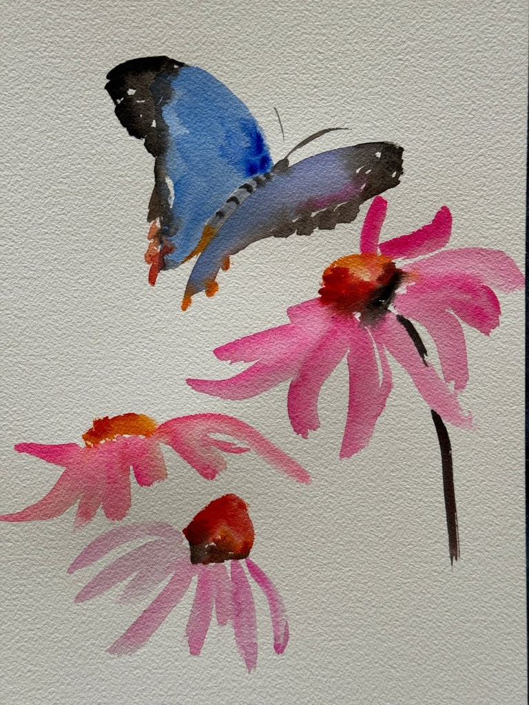 Blue Butterfly and Red Coneflower | 14" h x 10" w - Liza Pruitt