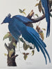 Actually, the bird is a native of Mexico rather than the Columbia River area in Oregon, and in painting it, Audubon departed from an early resolve never to draw from a stuffed specimen. In so doing, he erred and included the magnificent magpie jay with his northwestern birds.