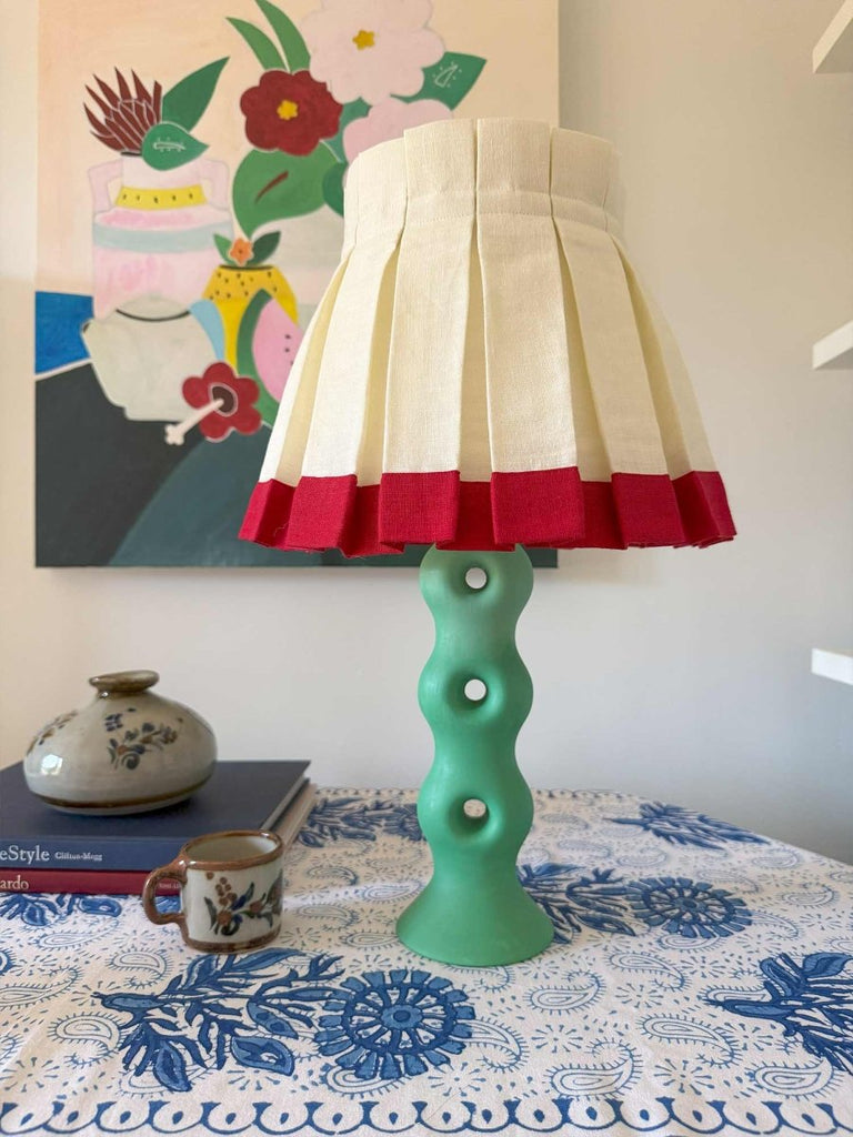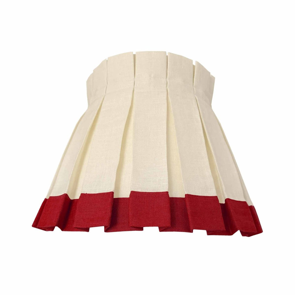 Our colorblock lampshade showcases a vibrant wide band at the bottom, infusing our iconic box pleat design with captivating visual intrigue.