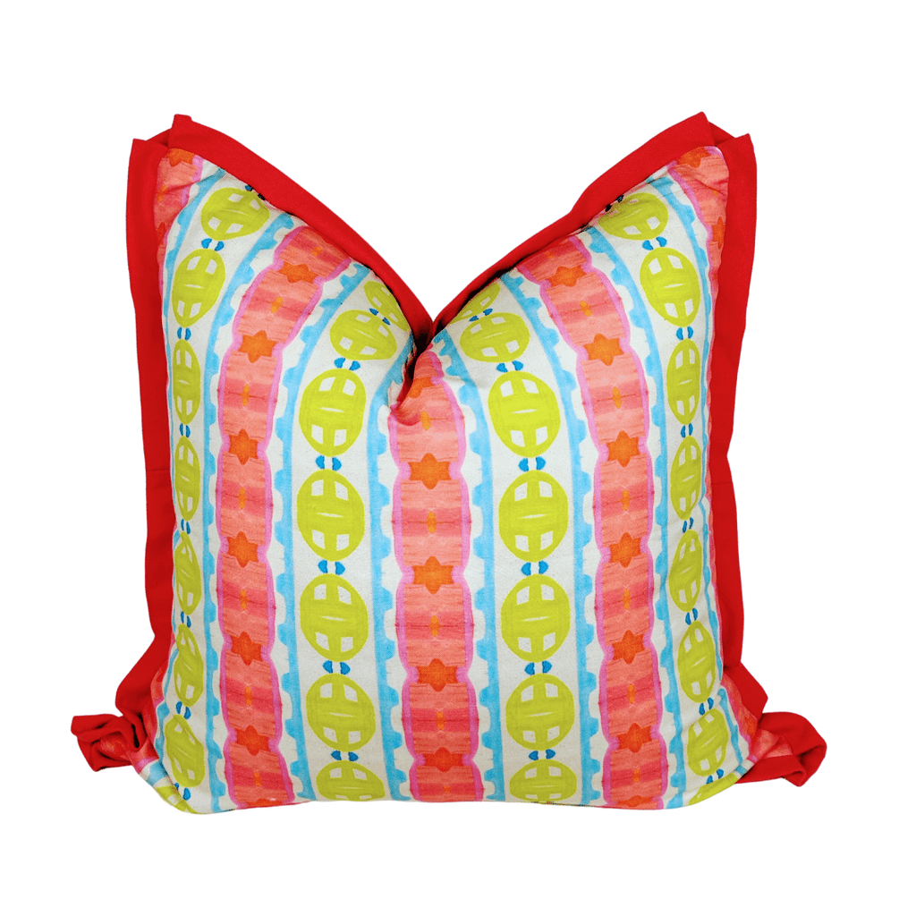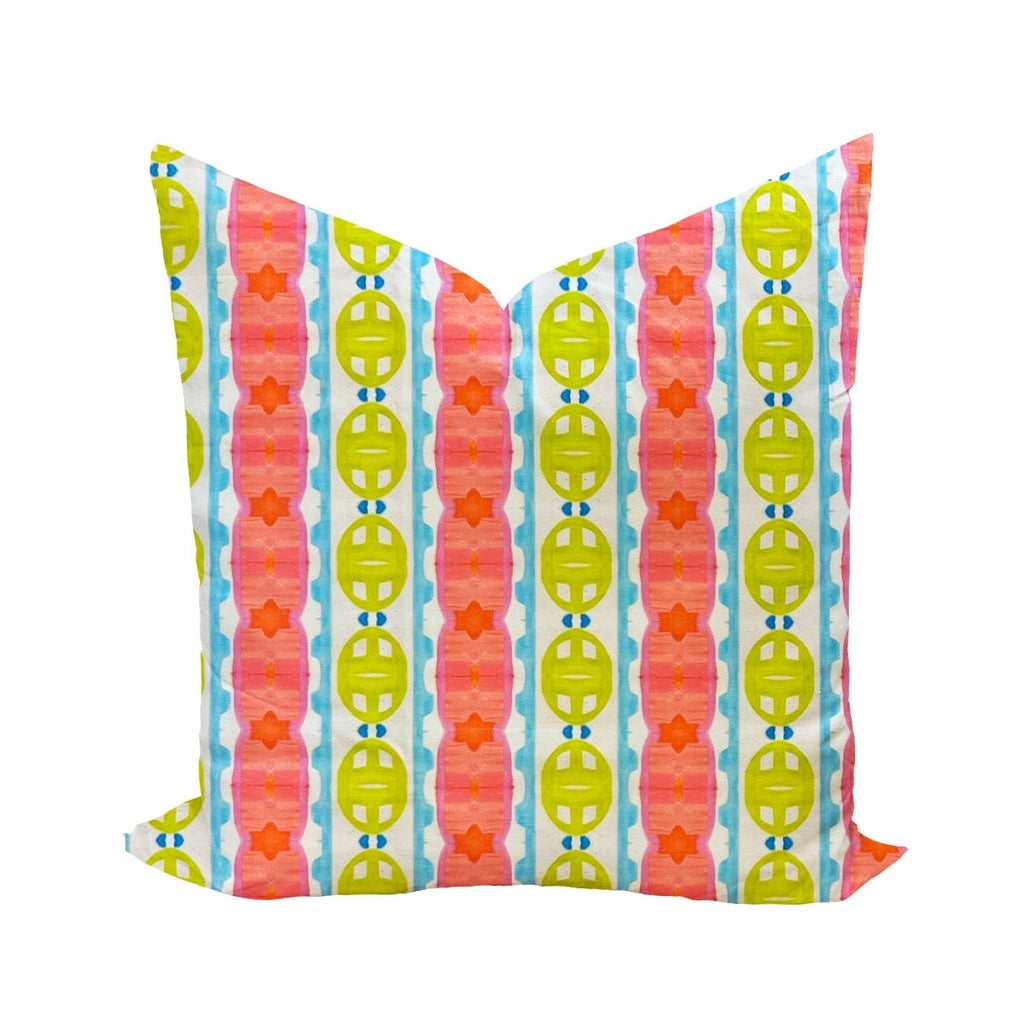 One decorative pillow cover featuring an abstract design on home decor weight fabric by artist Cathy Lancaster.