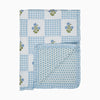 The Dorothy patchwork quilt features embroidered florals paired with a timeless blue and white gingham. The blanket is hand-quilted by skilled artisans using soft 100% organic cotton and is pre-washed for ultimate comfort. Dorothy reverses to our exclusive blue and green floral print and is finished with a sweet ruffled trim. Use it to cozy up on the sofa or style it folded at the foot of a twin, full, or queen bed. Comes packaged in a coordinating floral drawstring bag that we encourage you to reuse!