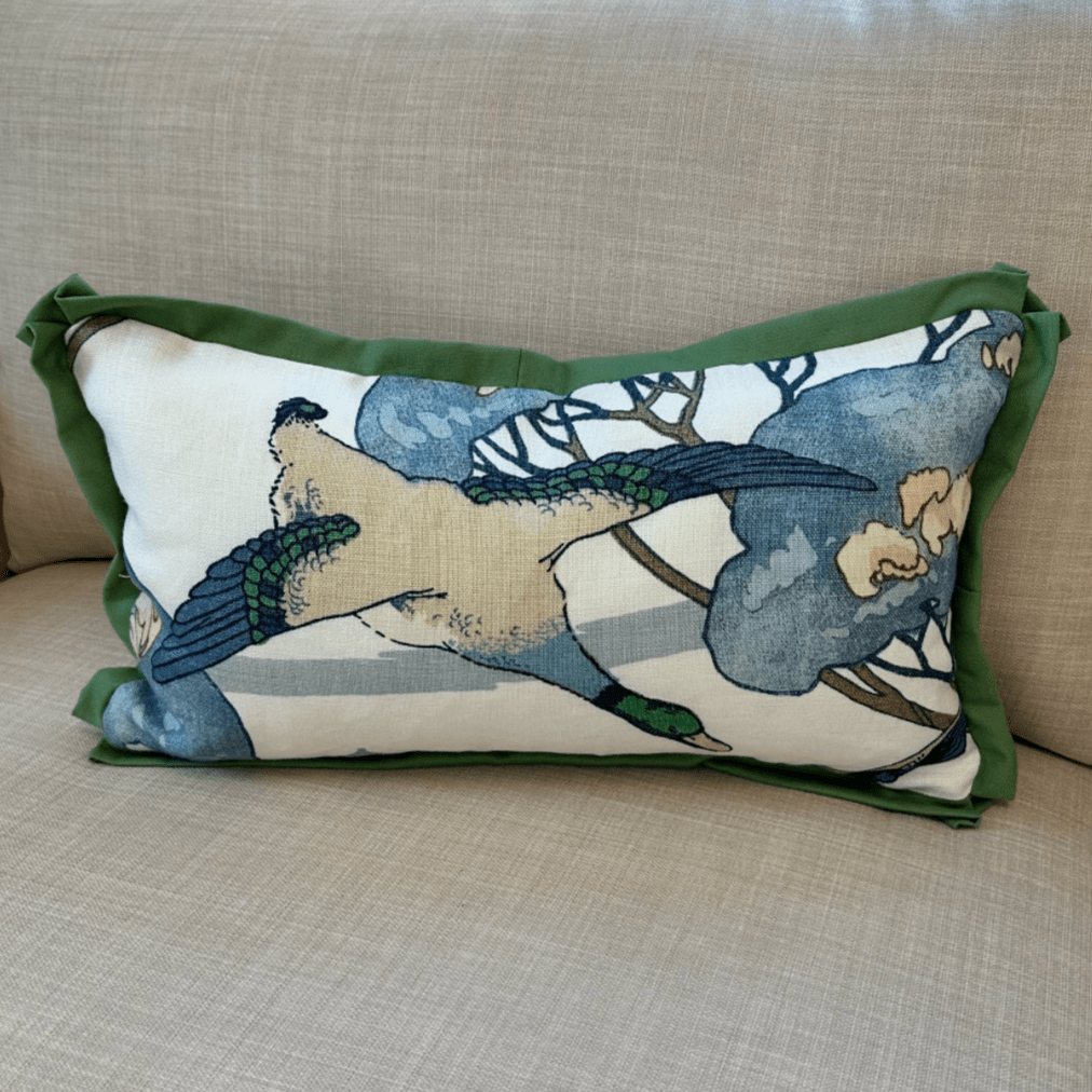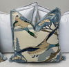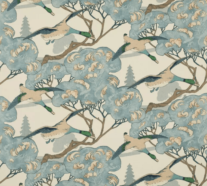 One decorative pillow cover featuring a flying duck print design on decor weight fabric.