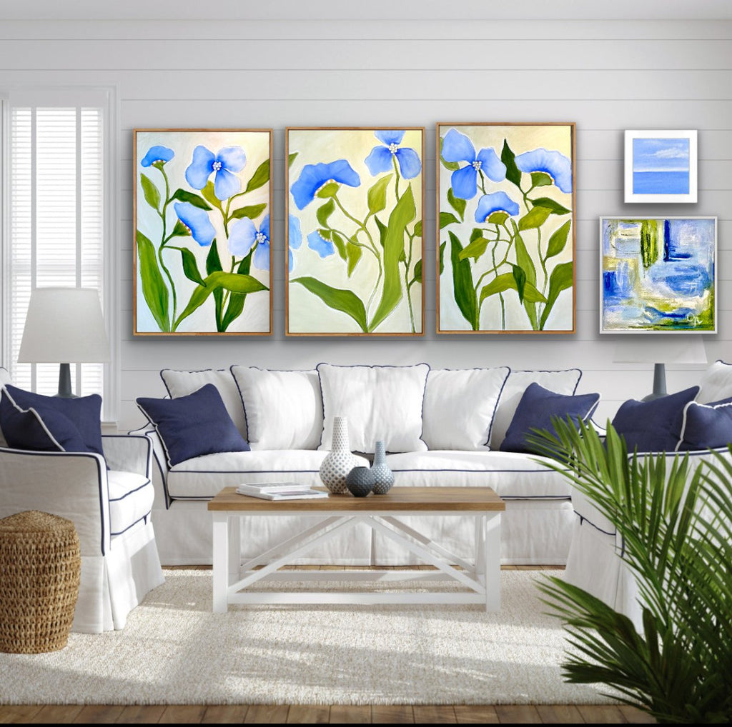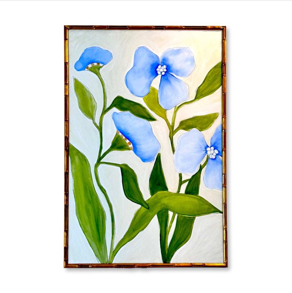 French Blue & Green Flora Soirée No.1 | 36" x 24" | Framed