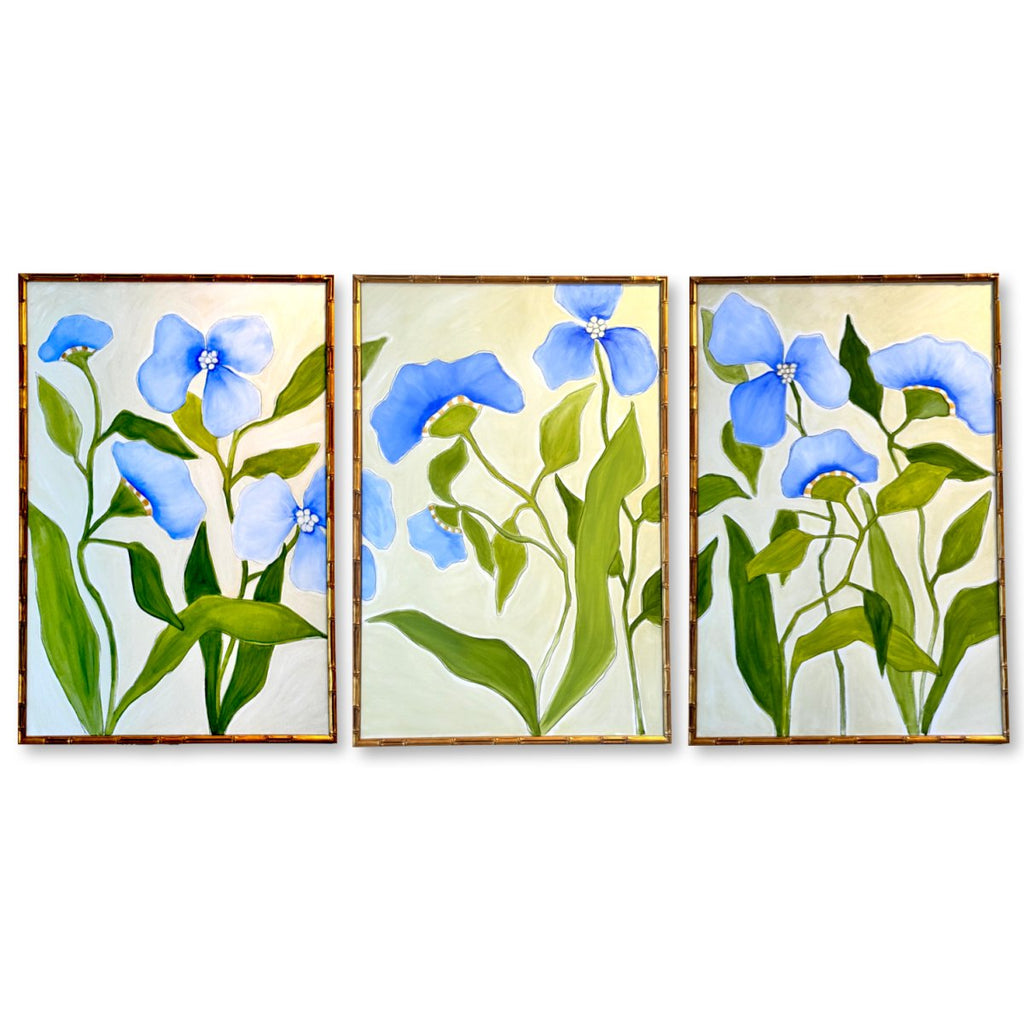 French Blue & Green Flora Soirée No.2 | 36" x 24" | Framed