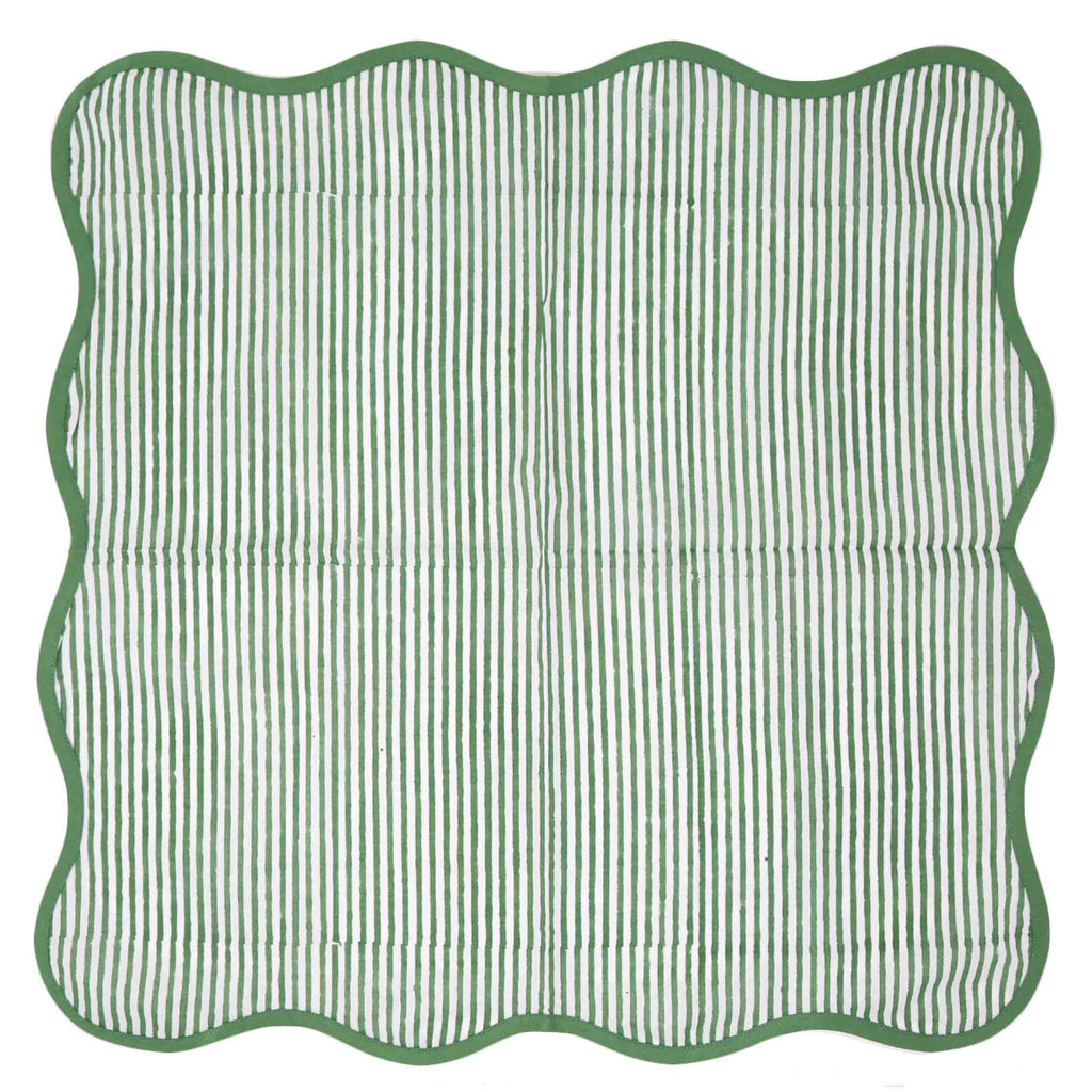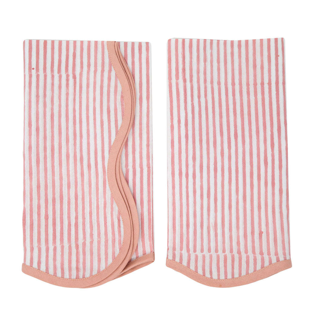 Hand-printed stripes in an array of inviting colors. Made in a soft cotton voile with a sweet scalloped border, our Harbor Stripe napkins are a classic and a crowd pleaser on any table.