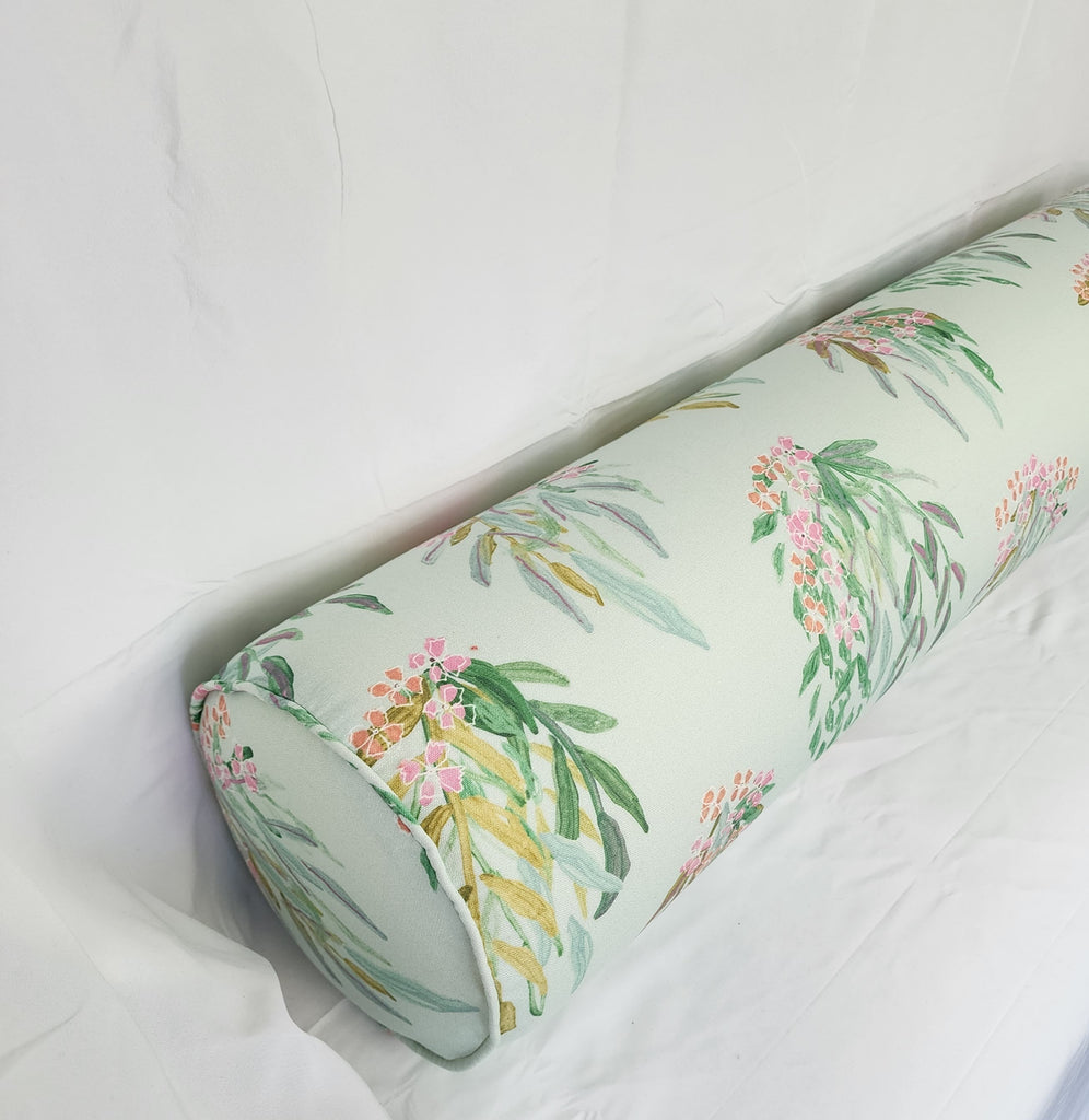 One decorative pillow cover featuring a floral design on home decor weight fabric by Lulie Wallace.