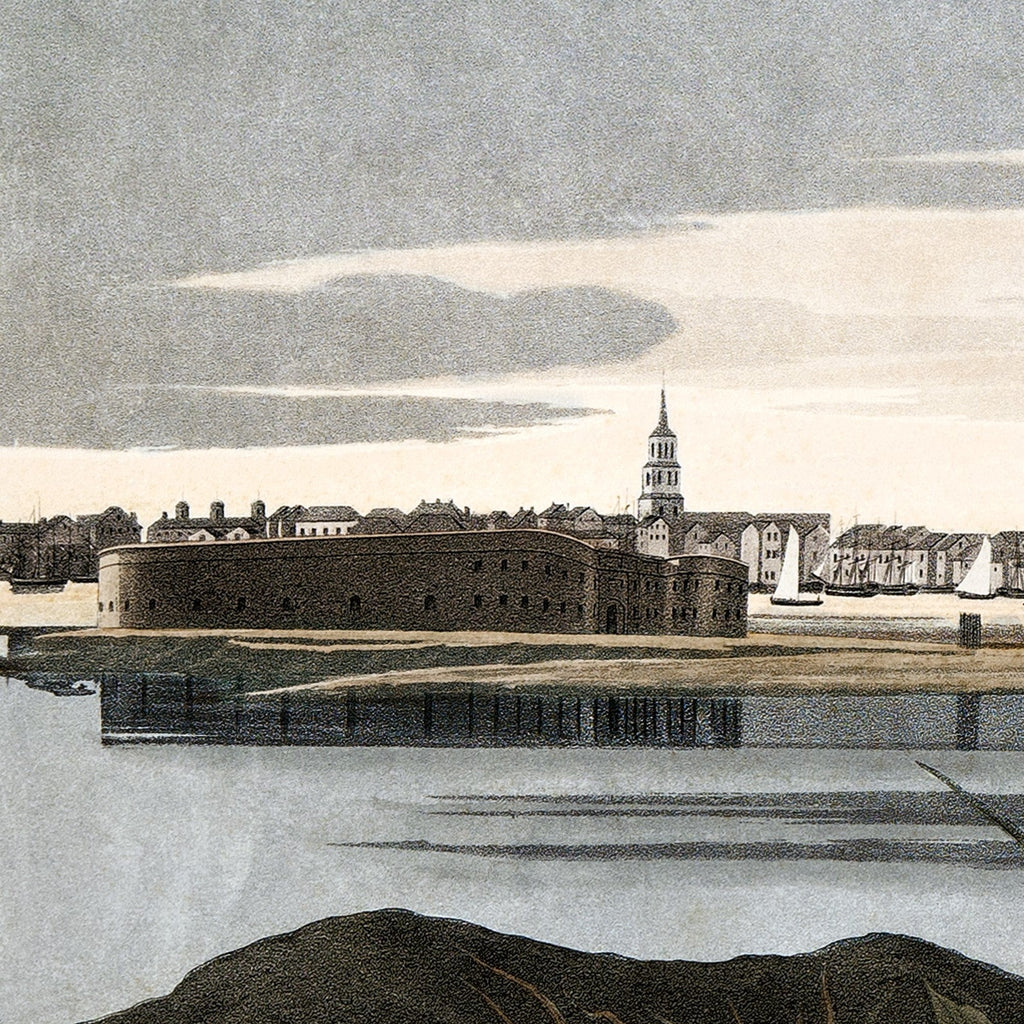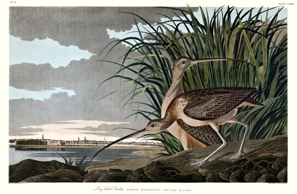 Princeton Audubon Fine Art Edition, plate 231, archival pigment print measuring 26 x 39 inches. Limited to 500 prints worldwide. Our double elephant Long-billed Curlew is reproduced by permission of a prominent Charleston SC family, in whose home the original was displayed for generations. The background is Charleston harbor with Castle Pinckney at left. This outstanding print is one of only a few that Audubon composed with recognizable civilization in the background. Some buildings exist today.