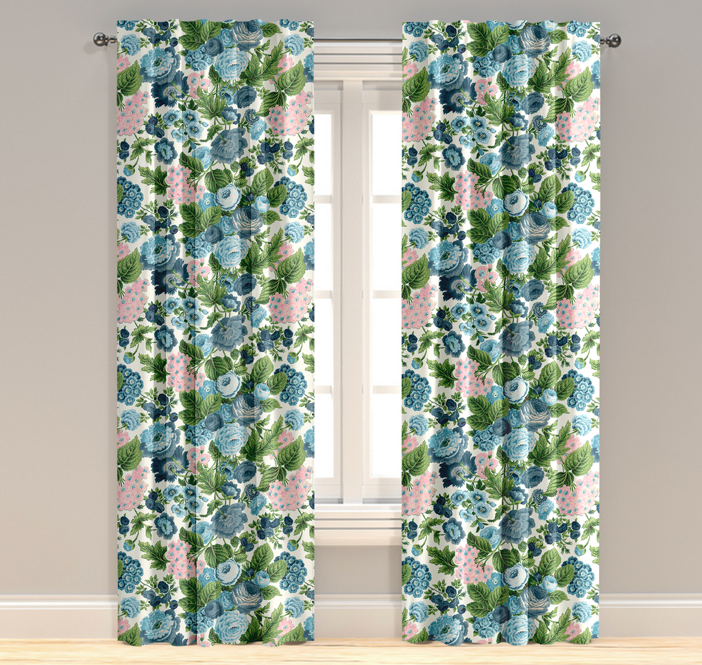Drapes are finished with 4" header with buckram, 5 pleats and a 3.5" return and overlap. Each single width panel needs 7 rings and comes with pins set behind the pleat.  (Adjusting the pin up or down can help lower or raise the panel a bit for slight adjustments as needed upon hanging). We always suggest waiting to hang drapery rods until the drapes are on hand, as it's easier to get the right placement/height when hanging the rod and drapery together.