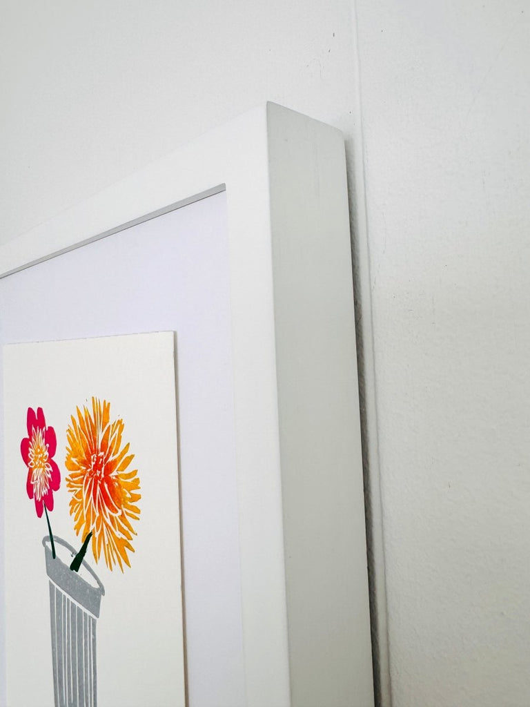 Pink + Yellow Dahlias | 14" h x 11" w | Framed