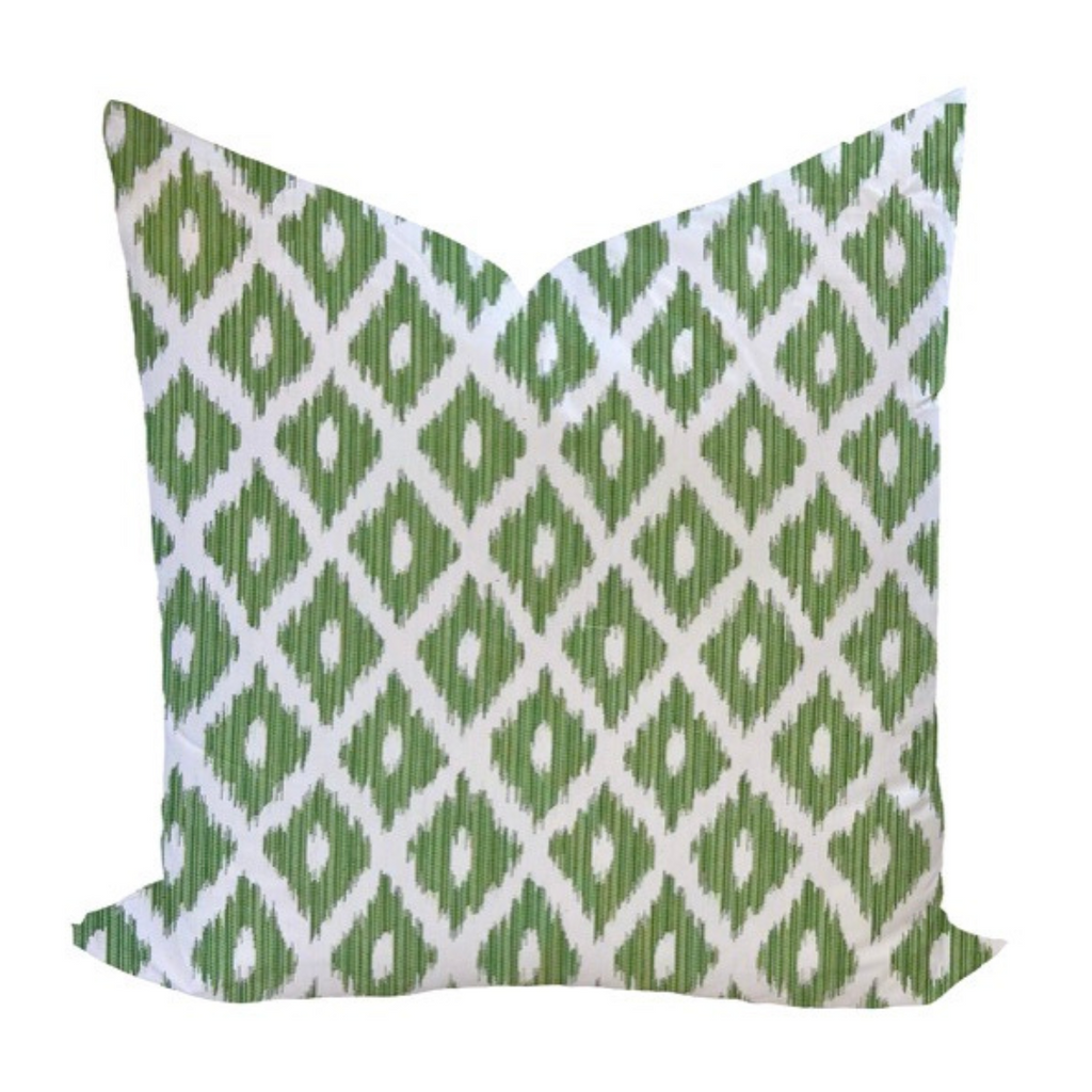One decorative pillow cover featuring a diamond like design on home decor weight fabric by Kravet.