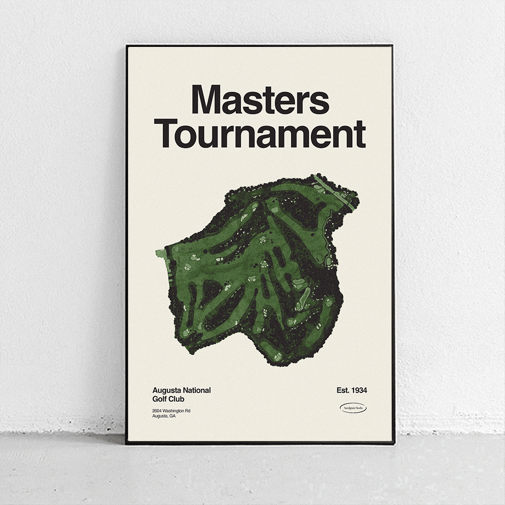 The Masters poster - course overview. Golf. Midcentury Modern design, Vintage aesthetic. Printed on Artisan Thick Matte Paper with high color and contrast. A unique gift for the golf or pga fan in your life.