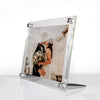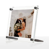 Stunning, Diamond polished bevel edge acrylic frame. Float photos up to 4x6, 5x7, and 8x10" between two acrylic panels. Stands vertically or horizontally. Includes two 0.5" diameter metal fasteners and two 2.5" long metal stands.
