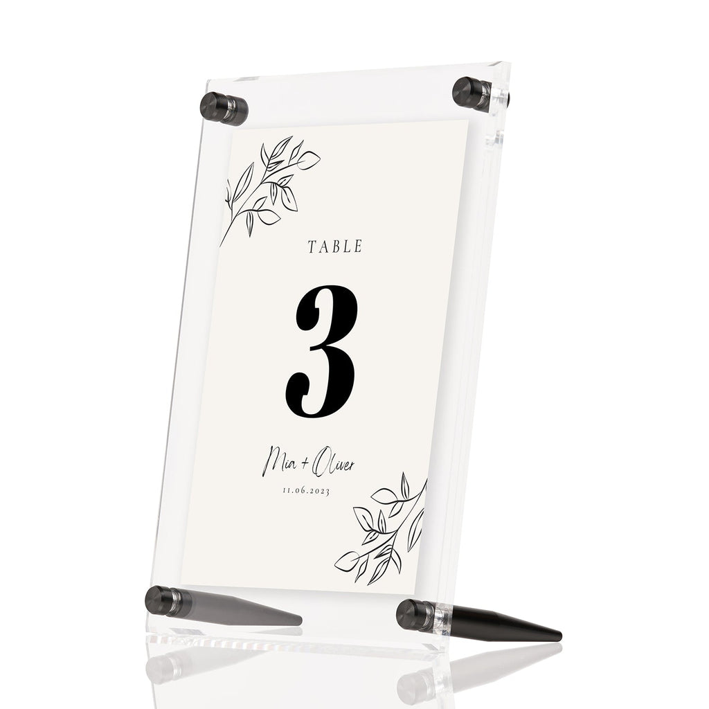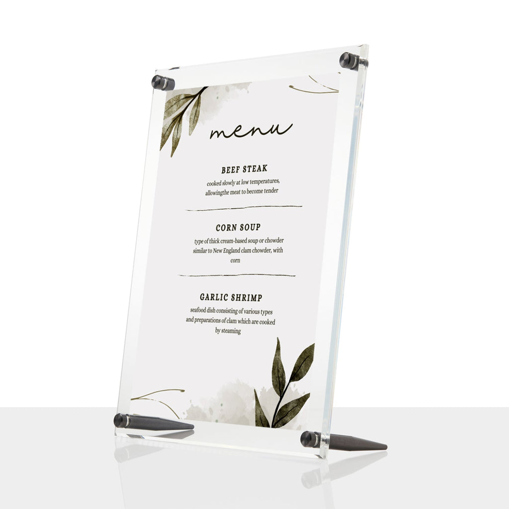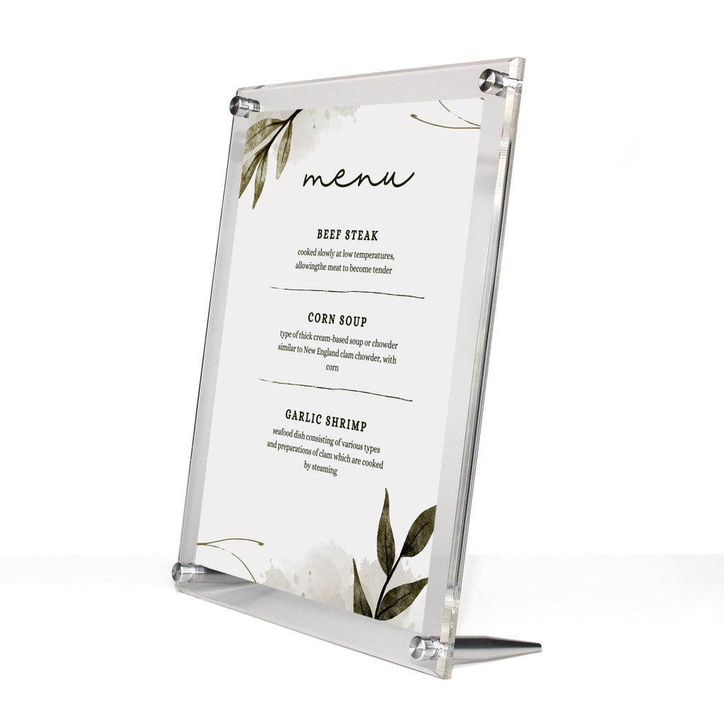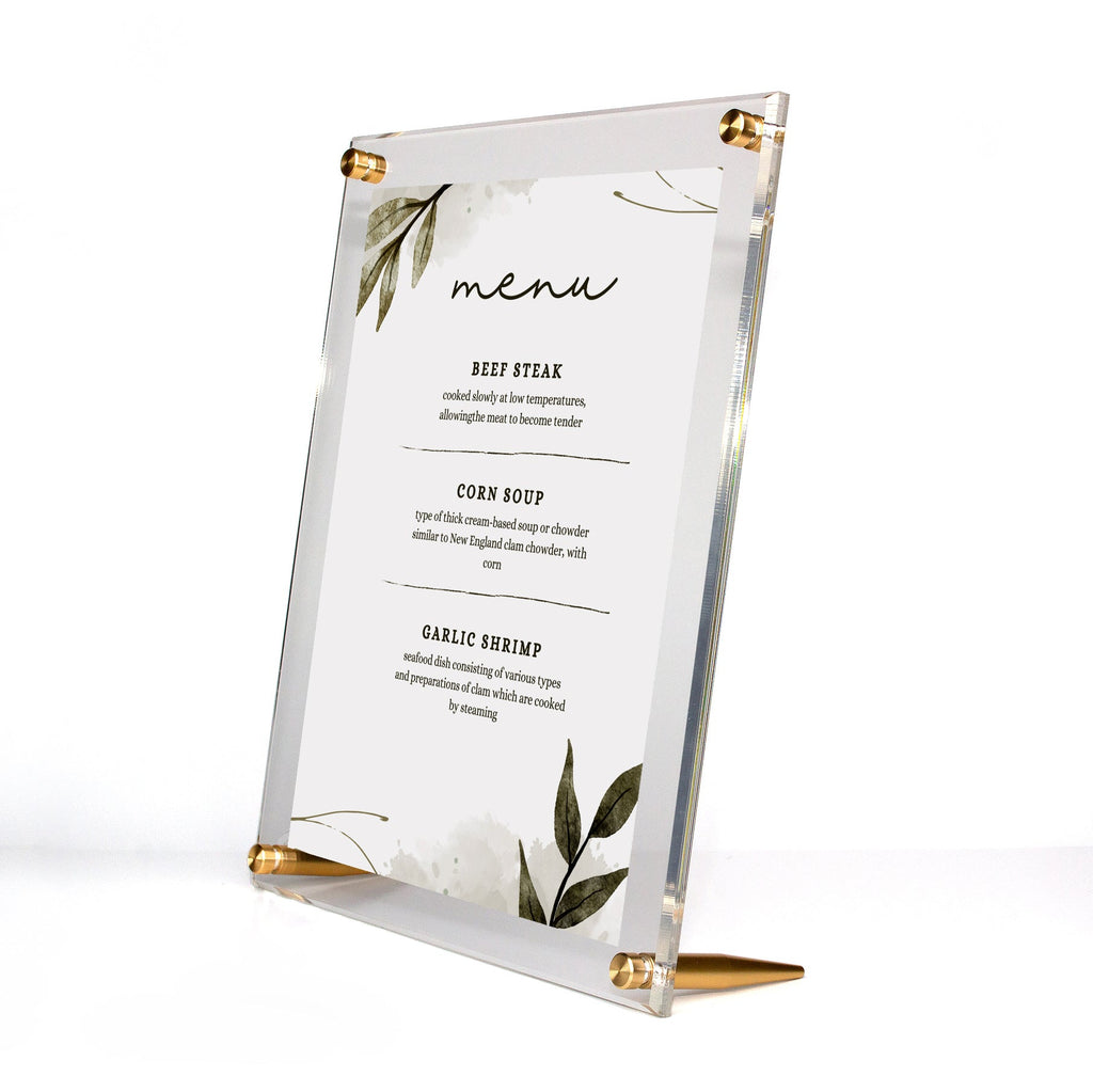Our tabletop frames make for the perfect personalized wedding display! You can use them as a menu display to place on tables, table seating numbers, cocktail menu displays, wedding favors, and more!
